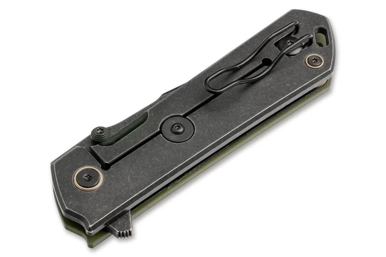 With the design of the Boker Plus Kihon Assisted OD Green the American custom knifemaker Lucas Burnley embodies the idea of the Japanese Kihon. The term originally encompasses the fundamentals and basic techniques of Japanese martial arts, which Burnley implements down-to-earth in solid everyday knives. Features and the straightforward design bear witness to its high practical suitability and give the knife an ideal basis for everyday cutting work. The ball-bearing Harpoon blade made of D2 has a dark stonewash finish and opens with spring support via flipper or thumb stud. The stainless steel Framelock, also with a dark stonewash finish, reliably secures the blade and is also equipped with a Hinderer Lock-Stop. The non-slip handle is covered with textured G10 on the front and is comfortable to hold. Gold-coloured anodised rings around the blade axis screw and the handle screw set decorative accents. With lanyard hole, clip (tip-up/r), and high-quality nylon case for storage.