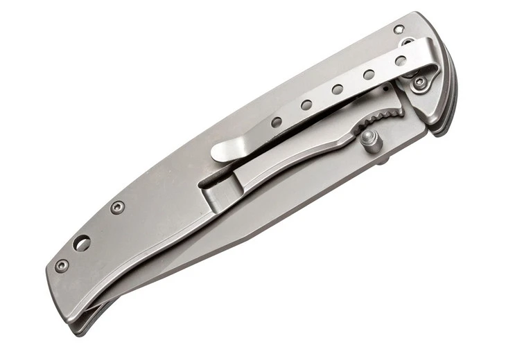 This model lives up to its name. The corrosion-resistant blade made from 440A steel is spring-loaded and opens quickly at the push of a thumb pin on both sides. The grooved G-10 scale feels secure in your hand no matter what surprises the weather might hold in store. The frame lock keeps the blade open reliably. With clip and lanyard hole.