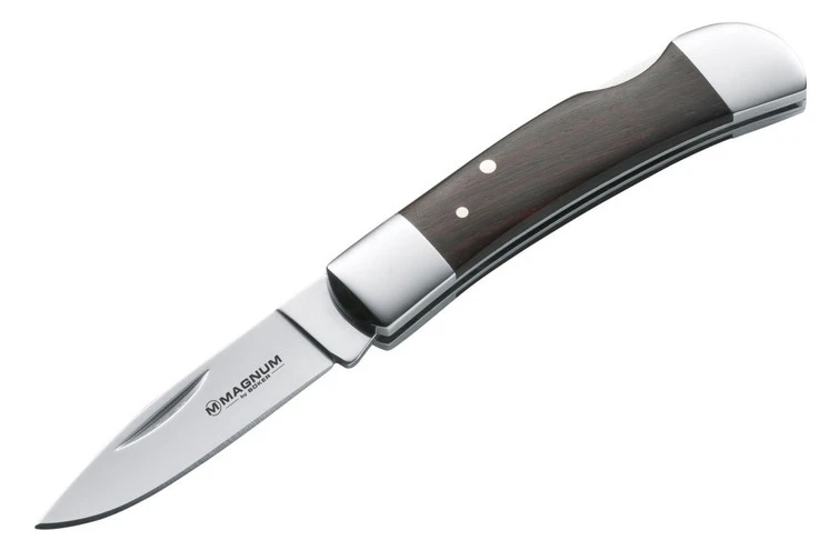 The value of this fine knife is reflected in its name. The polished blade made of stainless 440 steel locks cleanly over the lockback closure. The dark rosewood scales harmonise perfectly with the similarly polished metal cheeks. A knife, small in your pocket but big in use.