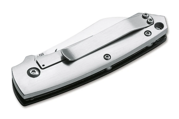 The Boker Plus Cox Pro, designed by Jens Anso, combines high stability with compact design and a reliable frame lock mechanism. The robust, four millimetre thick blade made of D2 has a fine hairline finish and is opened with two hands by nail nick. The self-supporting front handle scale of the handy pocket knife is made of certified imported cocobolo wood, while the stainless steel back houses the framelock.