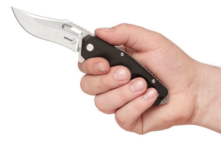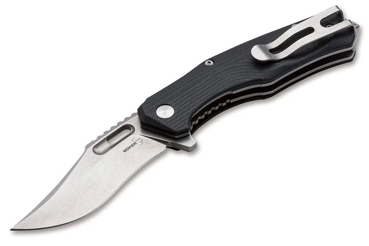 The Boker Plus Defender by Boris Manasherov offers balanced dimensions with an 8.3 cm blade, creating a knife that is big enough for most applications while still being compact enough to be carried every day. The clip-point blade with ball bearings and a stonewash finish is made from D2 and opened with the flipper. Black G10 and solid steel plates ensure the best possible grip and safe handling. Handle with striker and lanyard hole. With a deep carry clip for a deep pocket position.