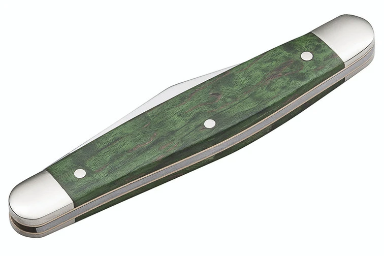 150 years of Boker knives – definitely a good reason to celebrate! And of course, we want our customers take part in that celebration. The selected models of this anniversary series are each an important part of Boker history, and thus represent a kind of overview over the years of production, from the oldest of all, our Camp Knife, up to more modern designs like the Cub. These exceptional models are equipped with handle scales crafted of stabilized Curly Birch, in a rich green. The unique grain and color of this wood blends in perfectly with the new blade finish, which is a special mix between a polished surface and a satin finish.