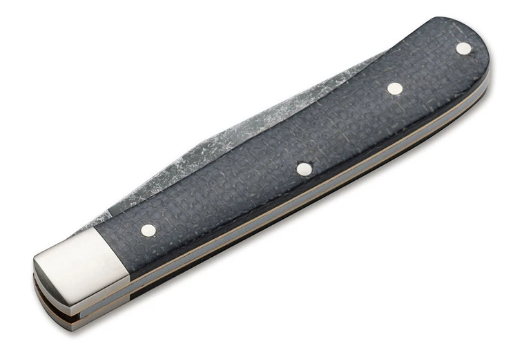 The Boker Trapper Uno Burlap combines tradition and modernity as a classic slipjoint pocket knife. Besides the scales made of structured burlap micarta, the knife is characterised by the use of brass liners and the carbon steel O1 as blade material, which is hardened to 60 HRC. To emphasise the authenticity of the knife, the blade is given a special acid-wash finish, which also protects it from harmful environmental influences. The Trapper Uno goes without the bolster at the end of the handle and owes its name to this modification. The slim design makes this traditional knife the perfect everyday companion. Handmade in the Boker knife manufactory Solingen.