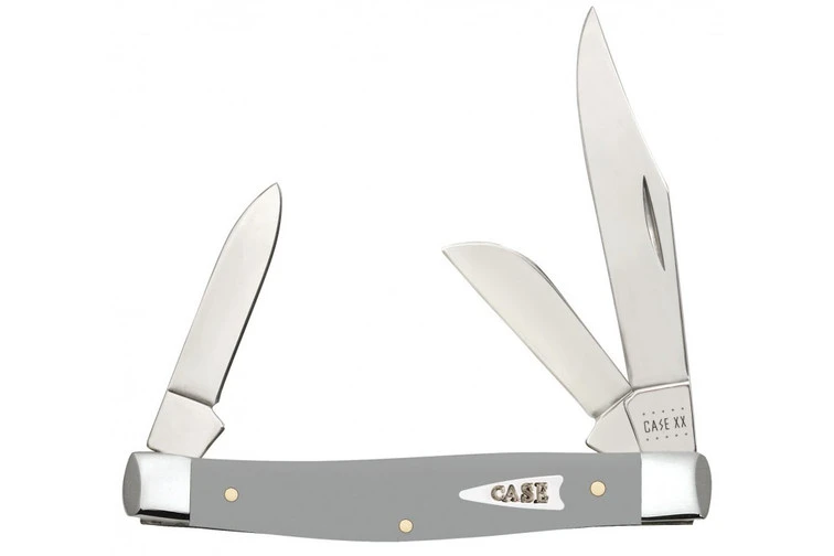 Case Medium Stockman with grey synthetic handle. This knife features three blades; clip point, sheepsfoot, and pen blade.