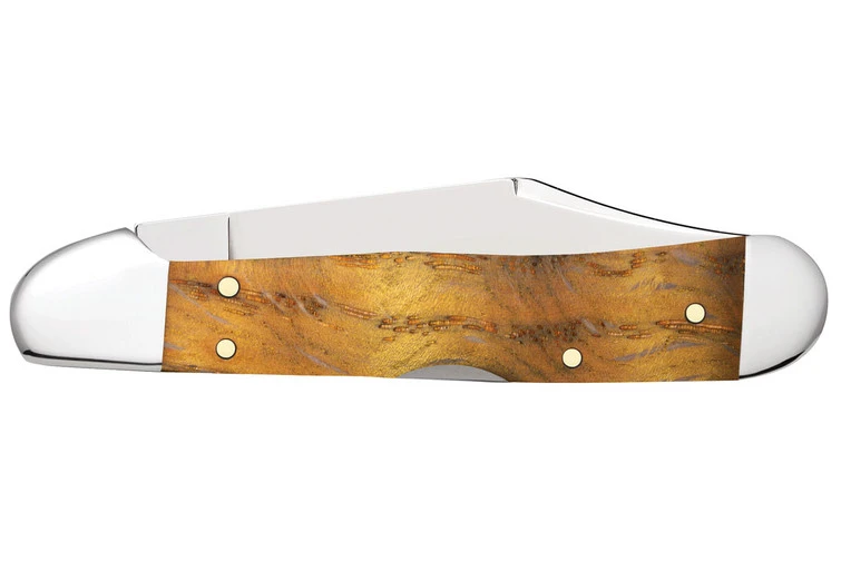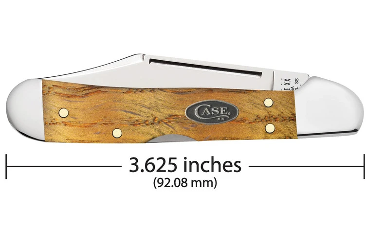 Yellow Curly Oak is warm and welcoming with subtle shades and bright accents. The Case Pewter Shield and Mirror-Polished Tru-Sharp Surgical Steel bring everything together in popular patterns. The CopperLock® knife is an original design by W.R. Case that combines elements from the Trapper and Copperhead to make a new lockback knife. The Mini CopperLock® is smaller than the traditional CopperLock® without compromising durability. With a fully locking Clip blade, this Mini CopperLock® knife has the cutting power of a lockback, with the look and feel of a traditional Case pocket knife. The Clip blade is commonly used as a multi-purpose blade that makes this pocket knife great for everyday use. This knife is constructed with Case Tru-Sharp stainless steel which is a special high-carbon steel that helps the blades hold an edge longer than conventional steel. It also offers extraordinary blade strength and corrosion resistance. Comes conveniently packaged in a box. Made in Bradford, PA, USA from domestic and imported materials.