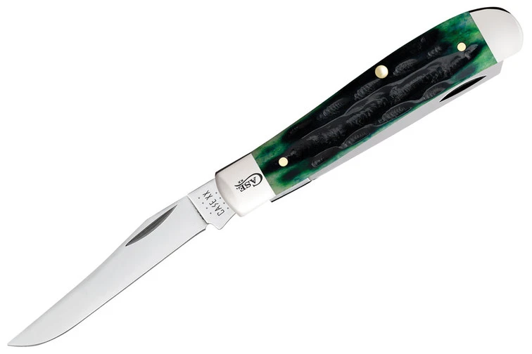 Clip & spey blades with a deep canyon hunter green jig bone handle.