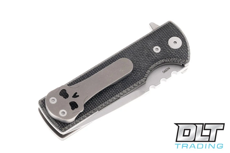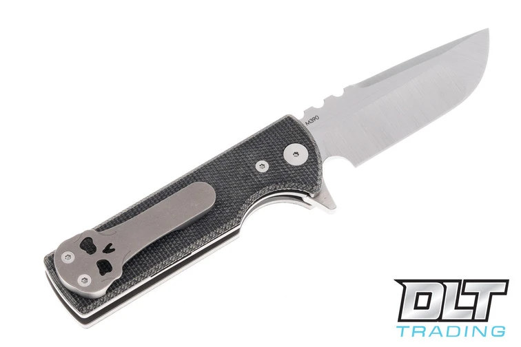 Chaves T.A.K. flipper featuring a removeable clip for right or left hand carry with a belt finished M390 blade. Includes additional clip that can be swapped for the standard skull clip.
