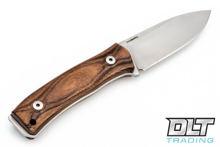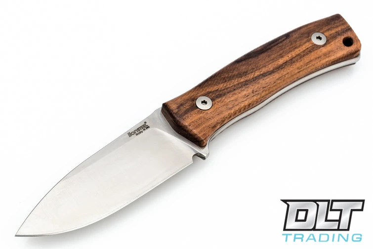 The M4 is a perfect companion for your mountains hikes. Available in four handle versions: olive, santos wood, walnut or G10 handle. Featuring a satin finished M390 blade and a premium brown double seam leather sheath