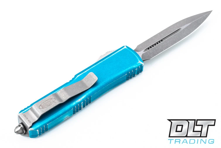 Microtech 225-12APBL Dirac D/E – Blue Handle – Apocalyptic Blade