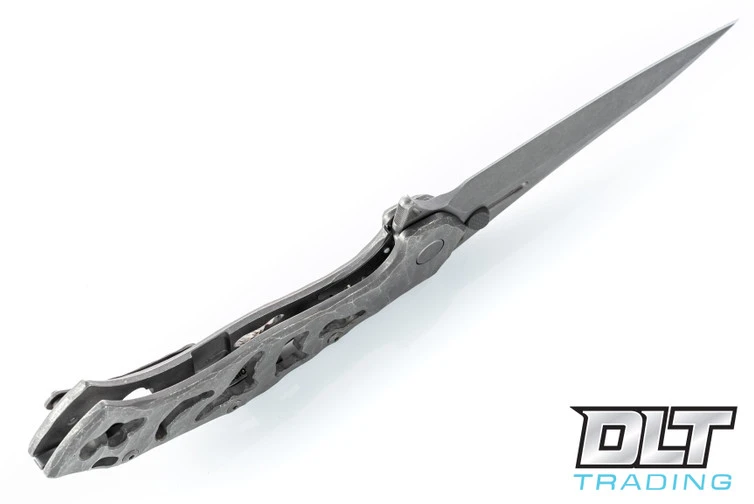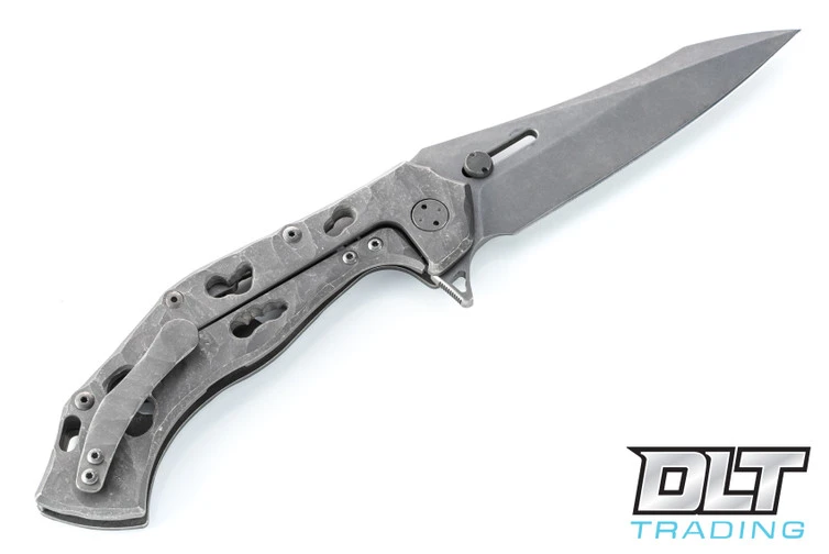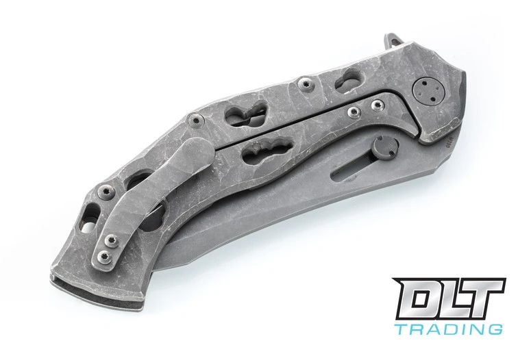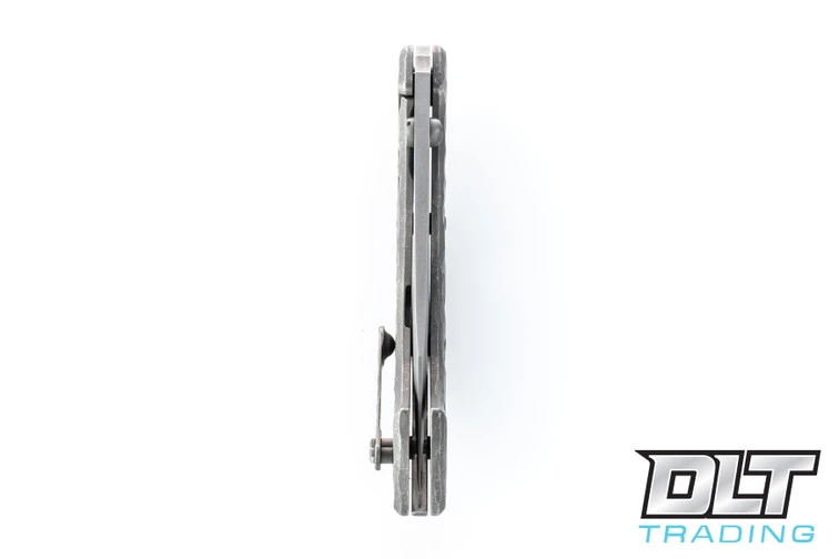 The Soloist is a big tactical folder. There are two blade shapes, Scout or Agent, both in 0.155″ thick M390. It?s deployed using the flipper or Olamic’s new thumbstud system. The titanium stud can be adjusted, reversed, removed, rotated, or multiplied. It?s available in two variants, a checkered oblique design and a domed one design. Other features include a new clip design, long floating backspacer, oversized standoffs, and rotation-free pivots.