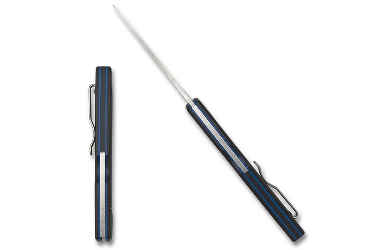 Its full-flat-ground blade is crafted from ultra-corrosion-resistant LC200N steel and supported by a stout back lock mechanism. To ensure a secure, non-slip grip in wet conditions, the blade is paired with a coarse-textured G-10 handle with a substantial integral guard. Both G-10 scales include a stylish blue accent layer and house a reversible deep-pocket wire clip that balances secure carry with quick access.