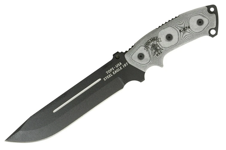 Where did TOPS get its start? The Steel Eagle series of knives were the first models ever created by TOPS. Over many continual years in the field, in every terrain and in all conditions, the Steel Eagles have proven their strength, durability, versatility and dependability within the Special Operations community and with civilians as well. The Steel Eagle 107E is a quarter inch thick 7 inch blade for those who prefer to have theirs without the saw back, and it continues to be a favorite personal carry choice of the quiet professionals.