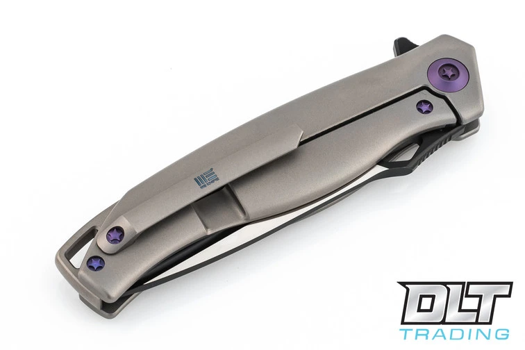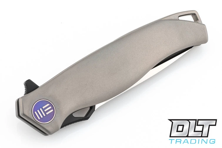 The 606 series from WE Knife Co. offers expertly contoured titanium handles and a unique CPM-S35VN steel blade with tanto inspired grinds. The knife is also equipped with a blade flipper and ceramic ball bearings for incredibly fast blade deployment. This 606C model has a plain titanium handle and a two-tone blade with satin grinds and black accents. Includes a secure titanium pocket clip and a bonus adjustment tool.