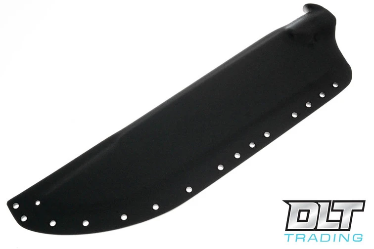 The Work Tuff Gear Puzon Predator Hunter includes aincludes a black kydex sheath with belt attachment, shoulder strap, microfiber cloth, and a padded case.